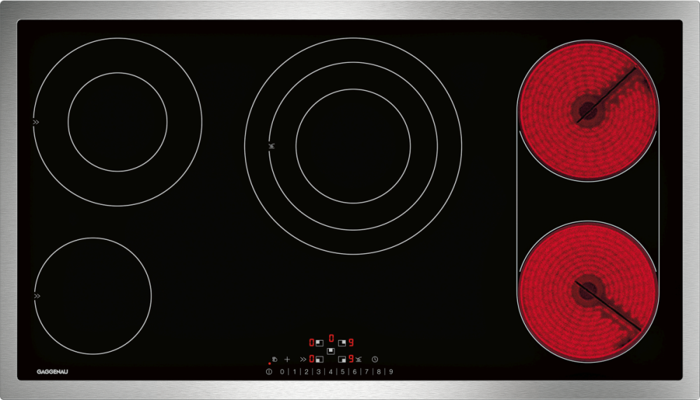 Электрическая варочная поверхность Gaggenau CE291 - это незаменимый прибор на любой кухне! Эта модель имеет 5 конфорок общей номинальной мощностью 11000 Вт. В целях безопасности варочная панель имеет защиту от детей, автоотключение при перегреве и индикаторы остаточного тепла.  При желании этот прибор можно установить заподлицо вровень со столешницей.
