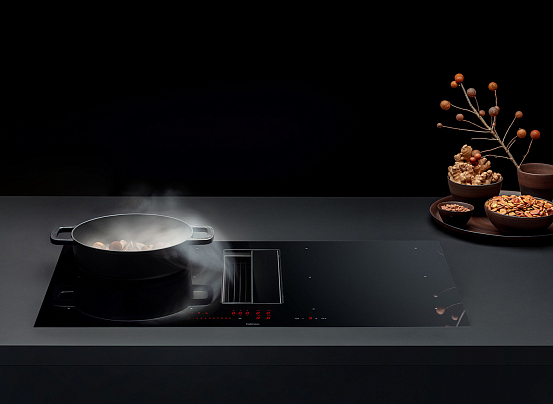 Итальянская варочная панель из стеклокерамики черного цвета. Компактные размеры (84.1×52×20.9 см). Современный элегантный дизайн.