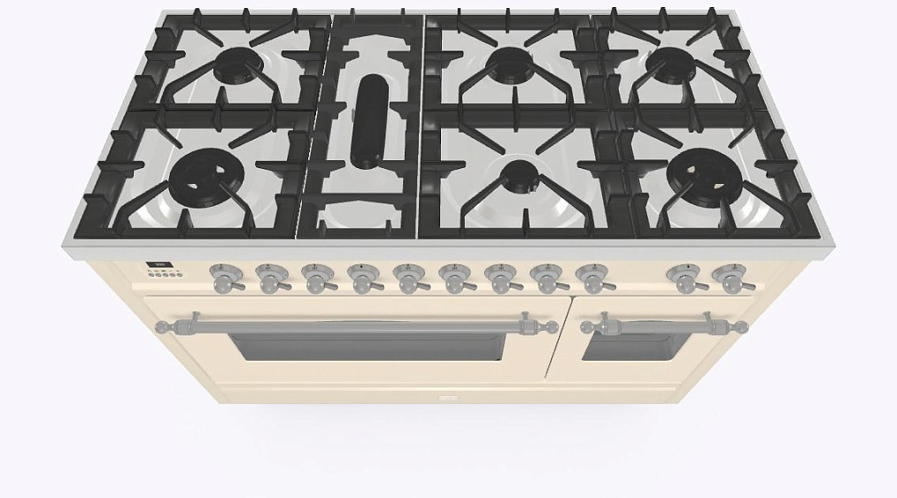 - Тип конфорок: 7 газовых, горелка для рыбной кастрюли