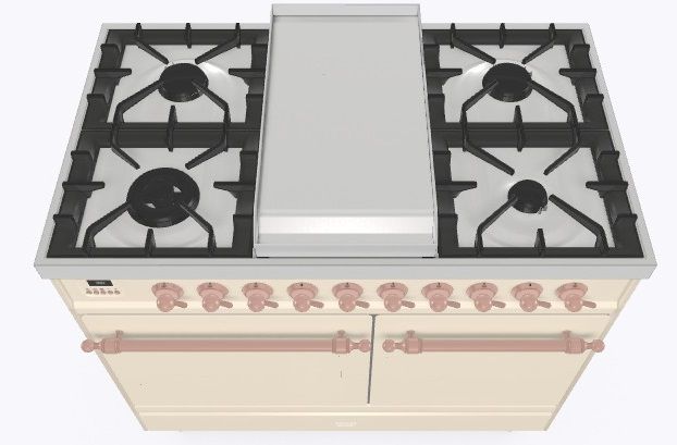 • Тип конфорок: 4 газовые конфорки, Dual конфорка, жарочная поверхность Fry Top