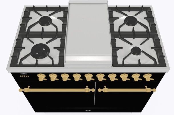 • Тип конфорок: 4 газовые конфорки, Dual конфорка, жарочная поверхность Fry Top