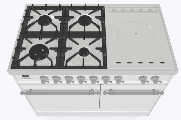 • Тип конфорок: 4 газовые конфорки, WOK конфорка, жарочная поверхность Coup de Feu