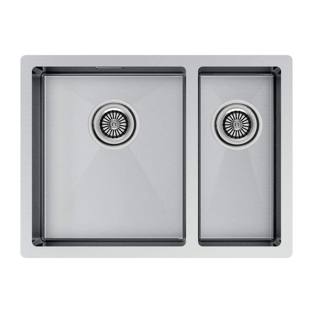 Габариты мойки составляют 590х440 мм, а дополнительная чаша шириной 180 мм расширяет функционал. Возможен подстольный, накладной монтаж или монтаж вровень со столешницей.