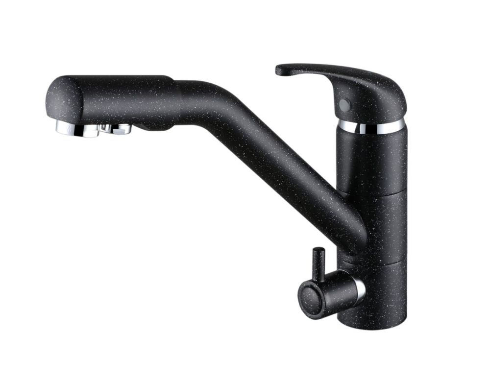 предусматривает поступление фильтрованной воды, которая не смешивается с водопроводной. Питьевая вода подается через отдельные трубку и аэратор, а для регулирования питьевой воды предусмотрена отдельная ручка.