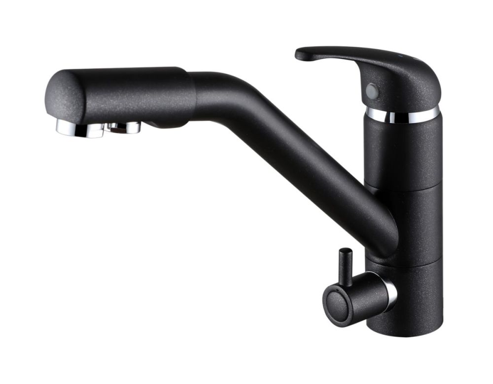 предусматривает поступление фильтрованной воды, которая не смешивается с водопроводной. Питьевая вода подается через отдельные трубку и аэратор, а для регулирования питьевой воды предусмотрена отдельная ручка.