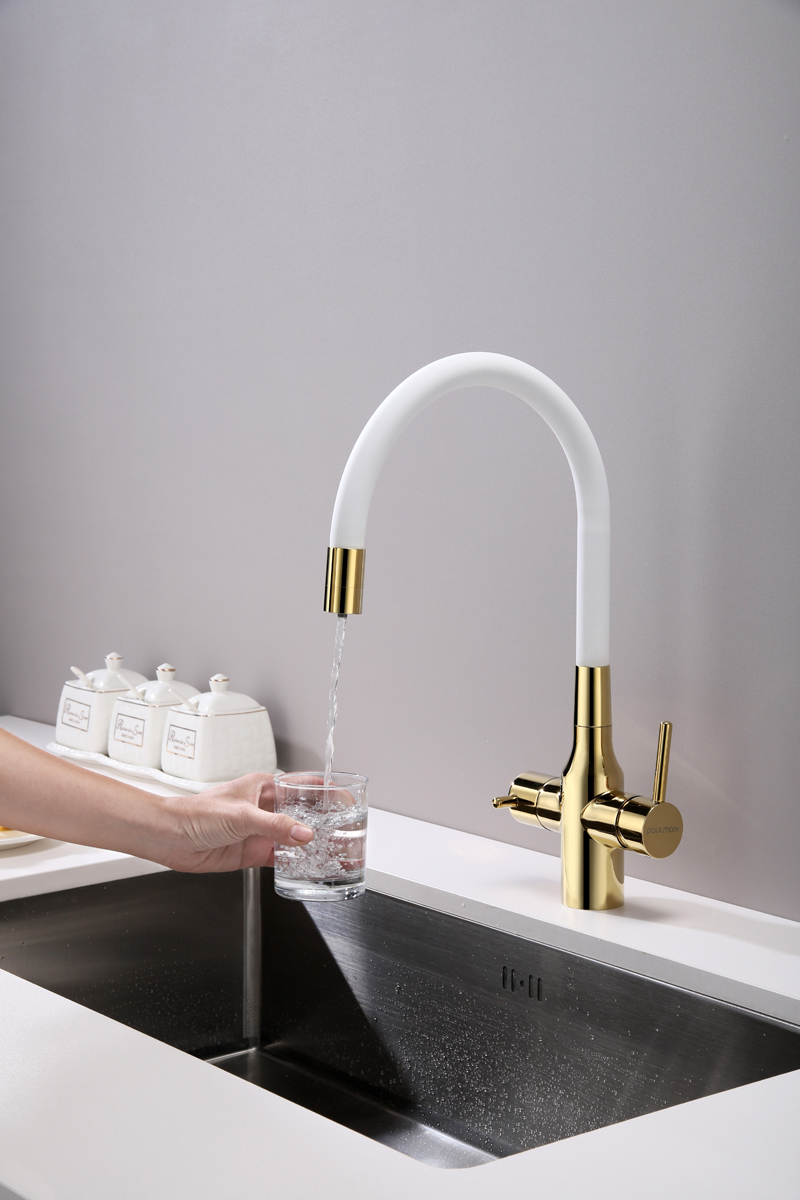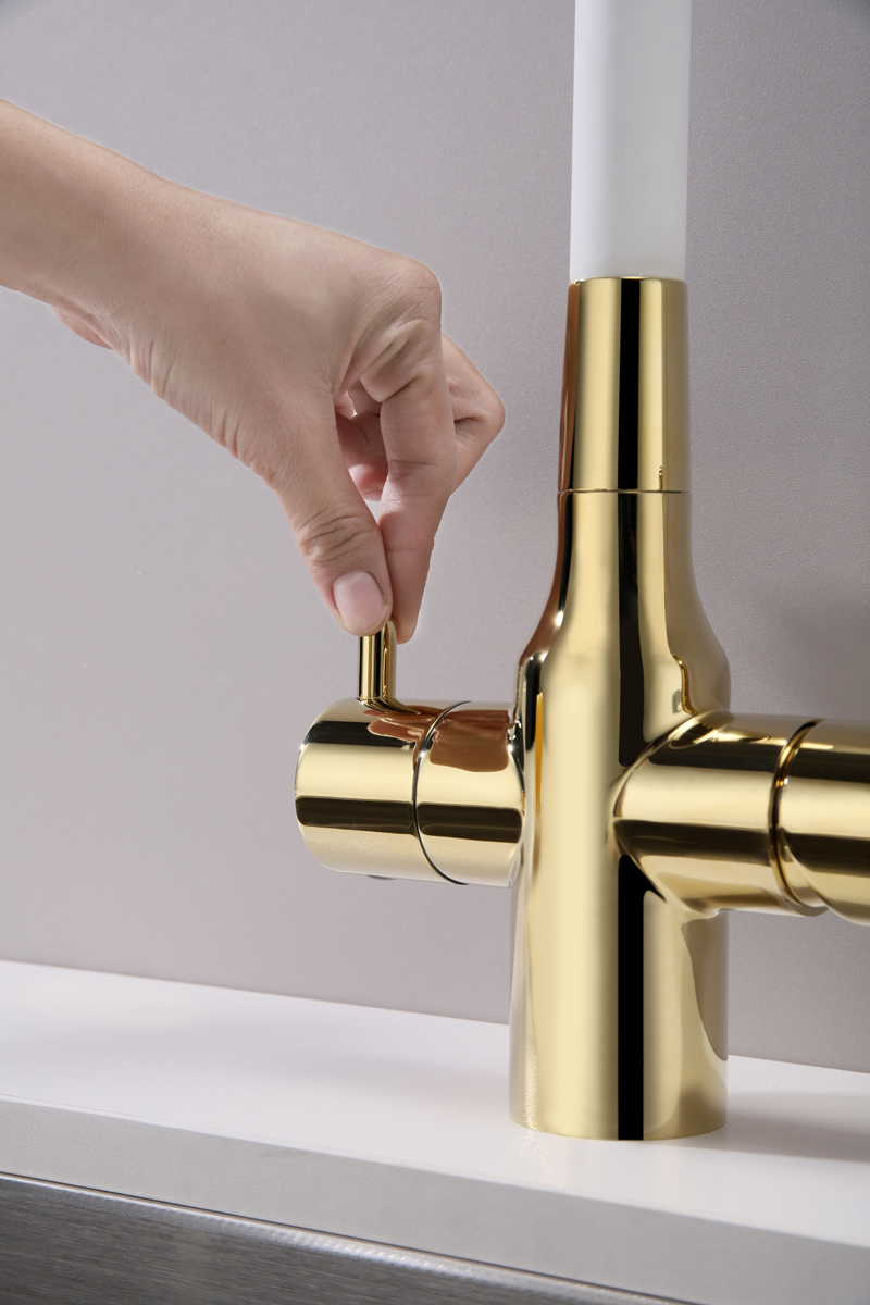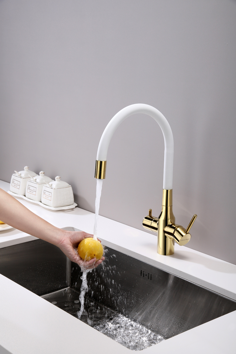 Смеситель для кухни SALIX c возможностью подключения системы фильтрации питьевой воды изготовлен из высококачественной латуни, которая отвечает высочайшим европейским стандартам качества, не содержит свинца, не разрушается со временем и безопасна для здоровья.