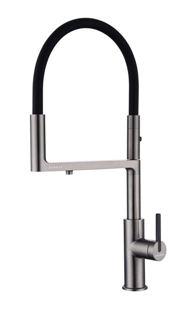 Многофункциональный смеситель для кухни TORNADO – модель премиальной серии «Starke» кухонной сантехники бренда Paulmark изготовлен из высококачественной латуни, которая отвечает высочайшим европейским стандартам качества, не содержит свинца, не разрушается со временем и безопасна для здоровья.